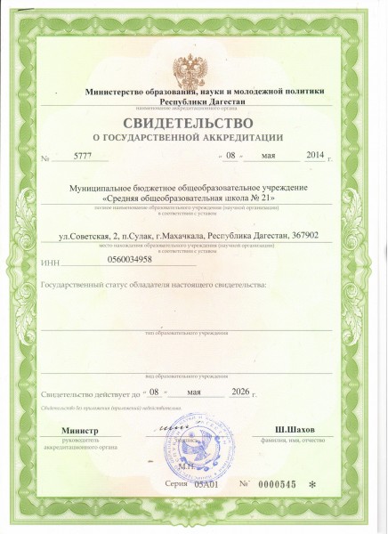 Свидетельство о государственной аккредитации